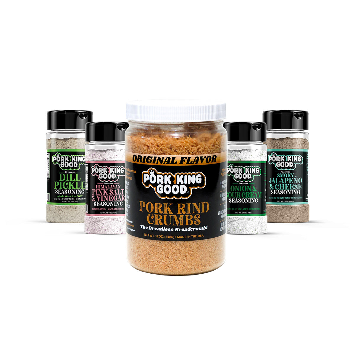 Bundle up and save some cash with our Feeling Crumby & Shook bundle! Take your low carb recipe game to the next level with our best selling Original Pork Rind Crumbs, and get weird with our new seasoning lineup!