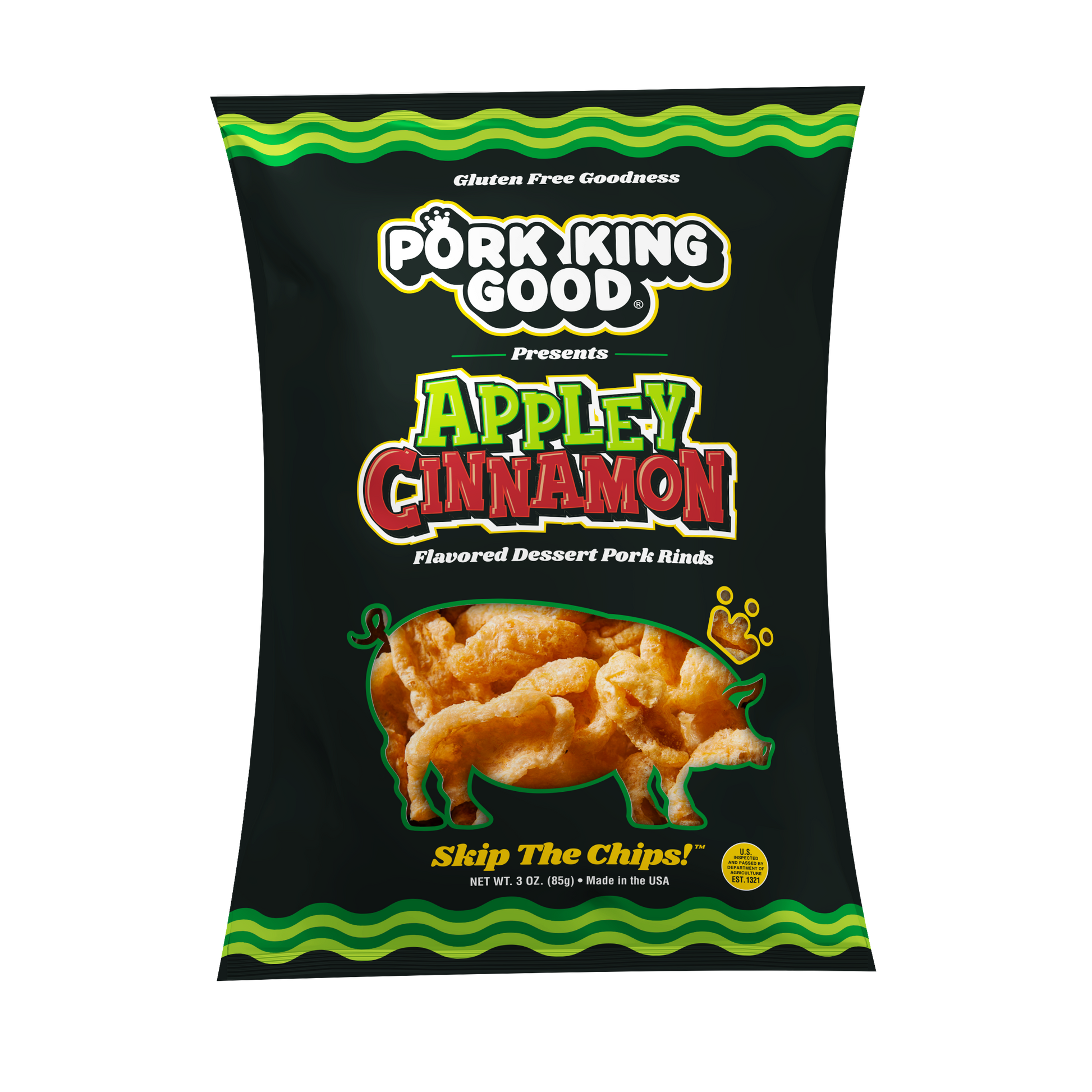 - 3 Bags of 3 oz Appley Cinnamon Pork Rinds