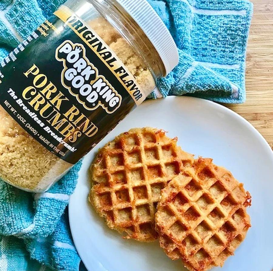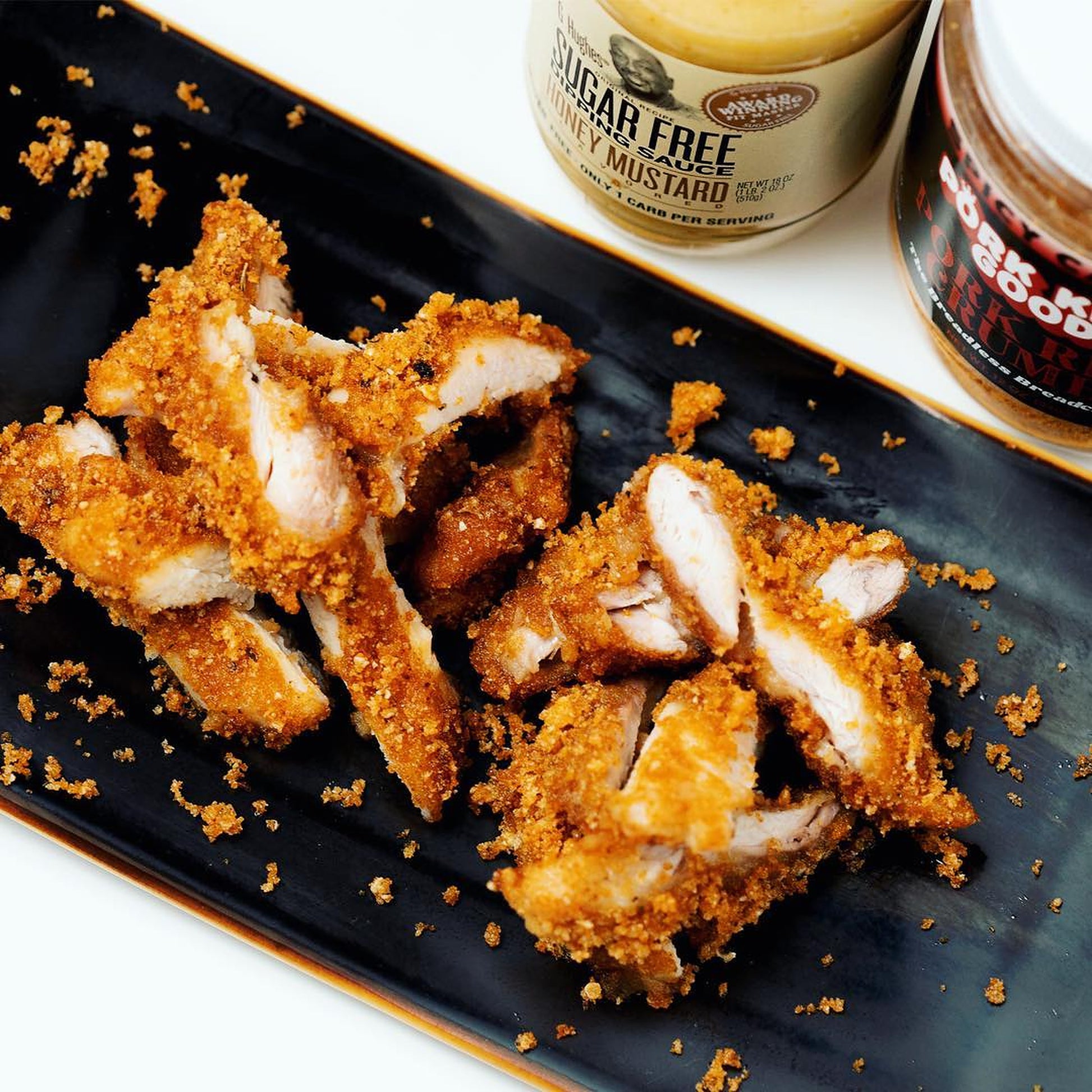 The low-carb recipe possibilities are endless with our breadcrumb substitute, Pork King Good™ Pork Rind Crumbs! Each convenient jar contains 12 ounces of Pork Rind Crumbs, made entirely out of our insanely delicious Pork King Good™ pork rinds!