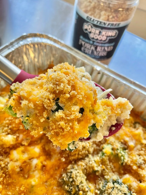 Just swap out traditional breadcrumbs for our Pork Rind Crumbs and enjoy your favorite foods without the carb guilt! Bake with them, fry with them, use them in an air fryer, or even sprinkle them on salad! Get creative and take your low carb recipe game to a whole new level. They’re always delicious, so stuff your Pork-King face!
