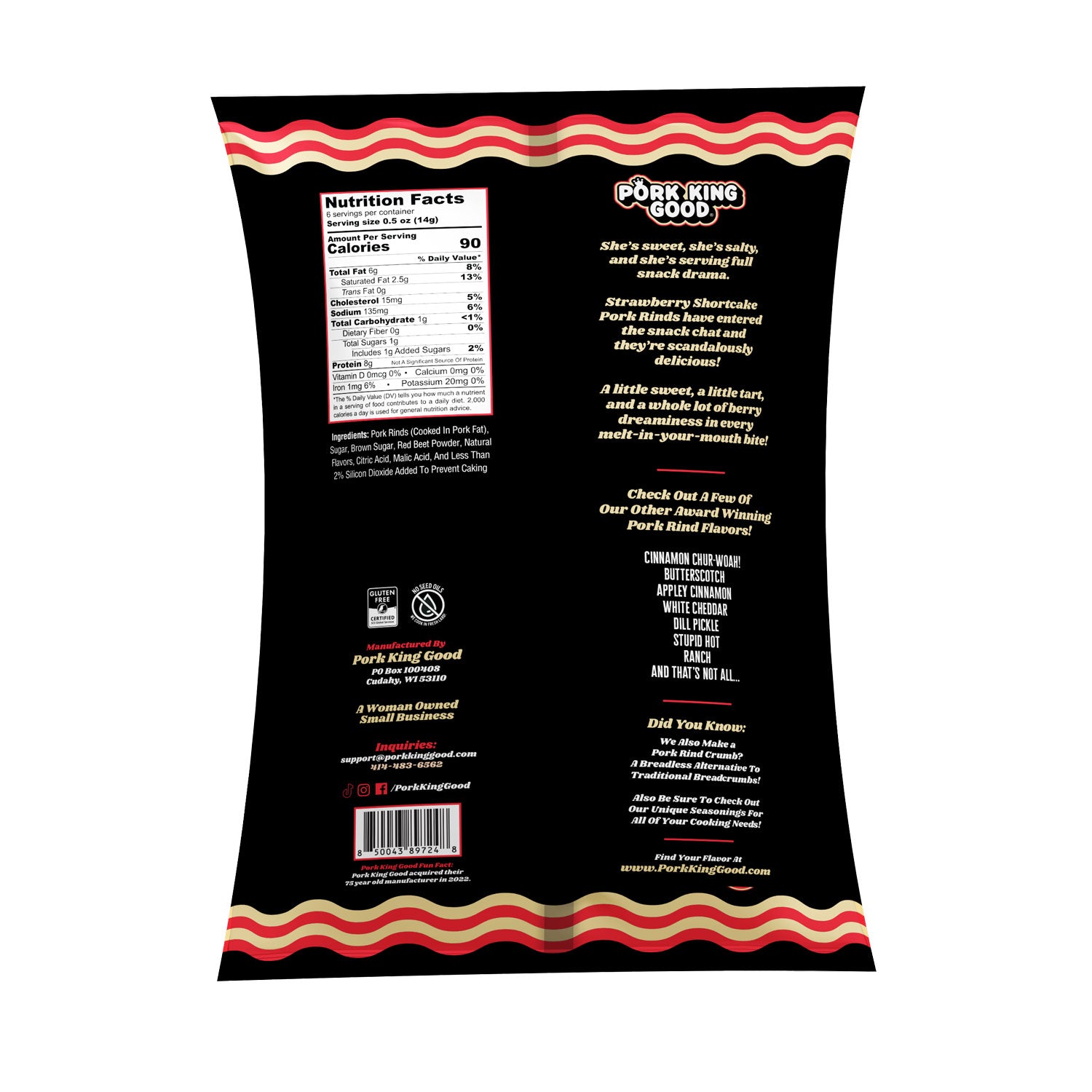 What can I say about the Pork King Good Strawberry Short Cake pork rinds except they are GREAT. You would never know you were eating pork rinds that's how good they are.